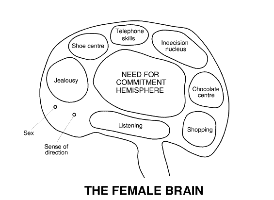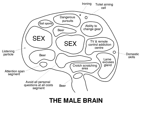 Look closely at the male brain again. See how small the toilet aiming cell is?? Barely visible!!!